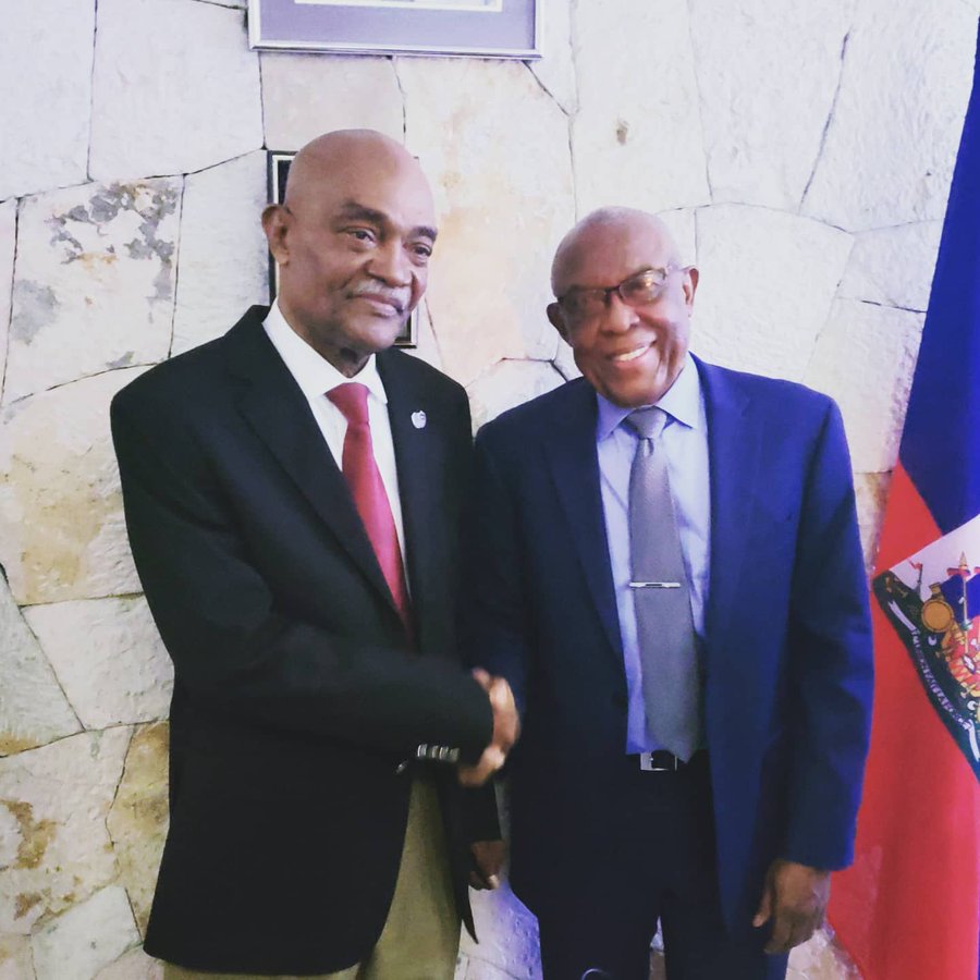 -Légende de la photo: Le Chargé d’affaires américain, a.i. Eric William Stromayer en compagnie du directeur général de l’Autorité aéroportuaire nationale d’Haïti (AAN), M. Yves Ducarmel François.